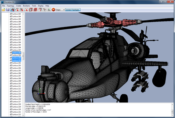 Discrete Geometry Kernel (DGK) - Advanced repair and editing for complex assemblies. The Discrete Geometry Kernel is a C++ library for repairing and editing complex assemblies commonly  found in engineering and scientific simulation. Tolerant repair tools, including stitching and imprinting,  enable accurate repair of model defects. Non-manifold support enables multiple volume bodies to be  effectively handled. Integration into a modelling environment is aided by automatic parent-child  tracking which allow faces and edges to be related to the original model even after extensive  modifications.   Partial Feature List: Curve to curve stitching Curve to surface imprinting. Angle and curvature based feature edge identification. Intersections Refinement, coarsening. Hole filling. High order subdivision. Advanced topology management. Low level (facet and node) and high level (curve and surface) editing. Construction of solid primitives, surfaces and curves. Portable, ANSI C++ source code. In addition to the high level interfaces, full low level support is provided to enable customisation and development of new algorithms.
